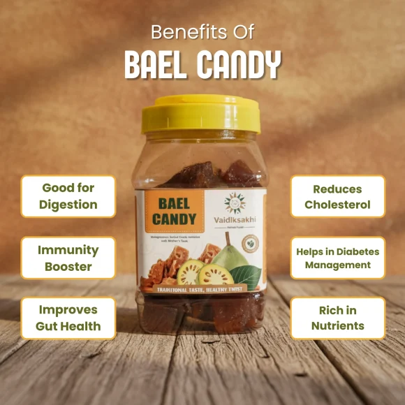 Relish the goodness of Vaidik Sakhi’s Bael Candy — a traditional sweet treat made from fresh bael wood apple. Naturally cooling, digestive, and flavorful, this candy blends ancient Ayurveda with modern snacking — healthy, refreshing, and simply delicious.