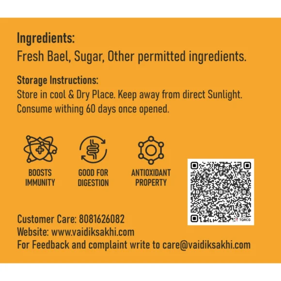 Vaidik Sakhi honors traditional Ayurvedic recipes through ethical sourcing and mindful preparation. We partner with small farmers to bring you authentic Indian produce made using natural methods. Every piece of Bael Candy reflects purity, honesty, and sustainability — free from artificial colors and preservatives. With a vision rooted in heritage and health, Vaidik Sakhi offers wellness in every bite.